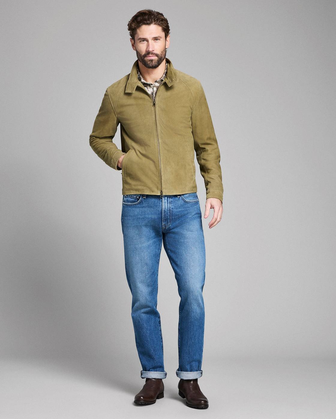 The Billy Reid Suede Harrington Jacket features a cut that should hit just above the waist — pay attention to Billy Reid’s sizing guide — while classic Billy Reid touches like brass hardware offer an elevated touch. Side slant hip pockets are another useful touch for stowing your everyday carry essentials, while a lightweight cotton lining gives this stylish men’s spring jacket some structure.