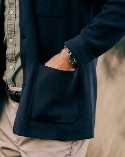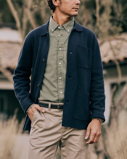 And while some versions of the best chore coats for men indeed lean more rugged and are crafted from materials like tough cotton canvas, the Wills Sweater Chore Coat leans more refined and crisply tailored. That’s because of its sweater-like build, made from a soft cotton-nylon blend for durability and performance without losing its shape.