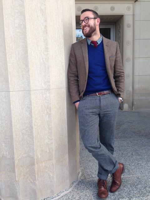 Heck, GQ is even a proponent of wearing it under a suit (a bolder move, but one that definitely works). The texture of the shirt is the key here — it’s marled and weathered, and it’s got a great workwear feel to it. More importantly, it’s a item that’s trendy yet most likely won’t die out anytime soon — it’s become, in some ways, the modern-day version of the OCBD, as it exists in an older dimension with a workwear vibe and yet is cut slim for current times. It can be worn under layers in the cold, and it’s the perfect type of shirt to pair with a thicker-weight tie. A wool tie (or a knit tie) has more going on texturally than a silk tie, so the combination just works well together. Underneath the odd vest or a heavier blazer, (as seen in the photo below), the chambray shirt falls right in line with a lot of different textures going on.