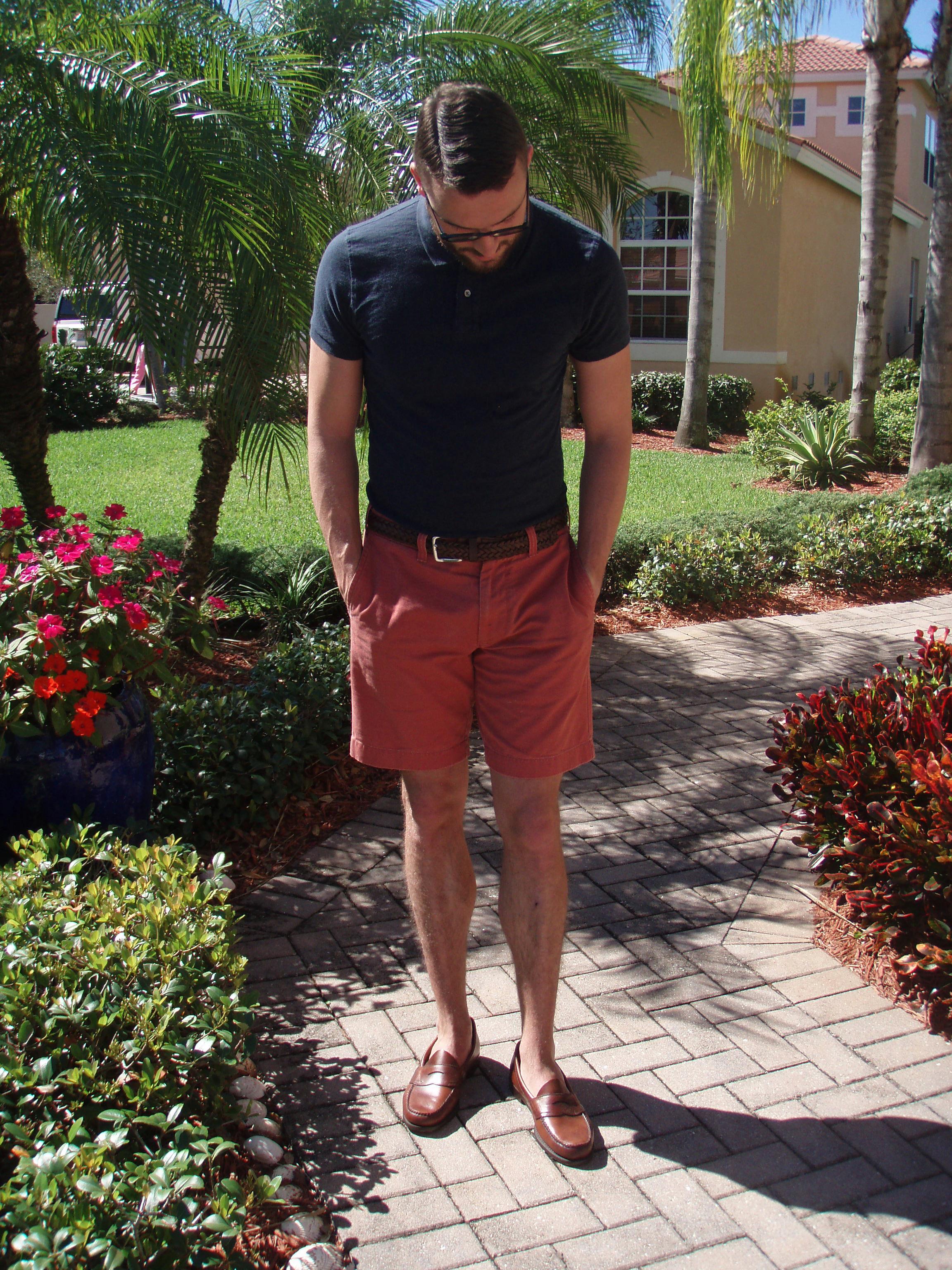 Experimenting with Weejun loafers and shorts. Navy polo by J. Crew. Shorts by J. Crew Stanton. Belt by Target Merona. Glasses by Burberry.