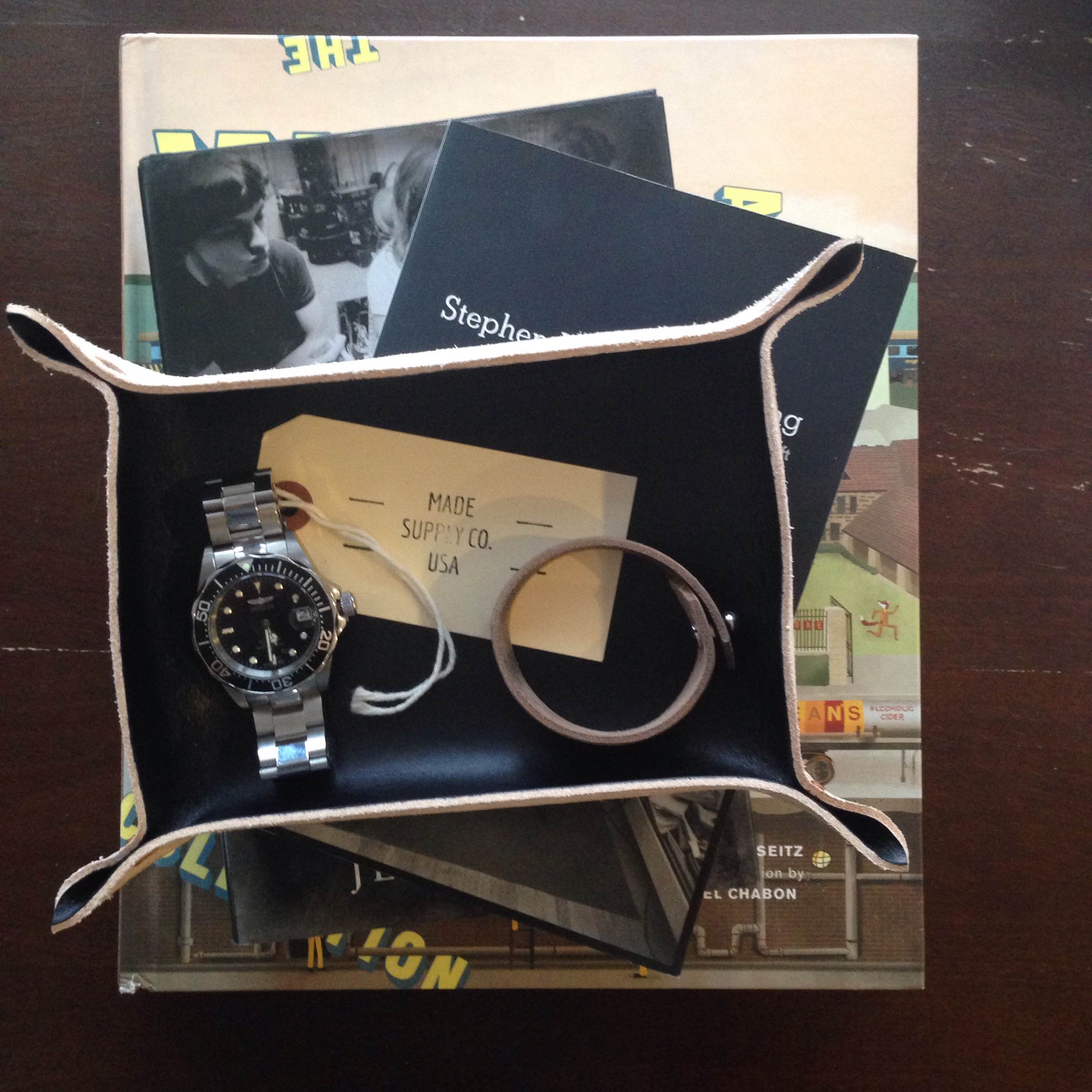 A look at the trim fit of a polo from this year’s collab. Navy chinos by Bonobos. Striped webbed belt by J. Crew Factory. Silver dive watch by Invicta.