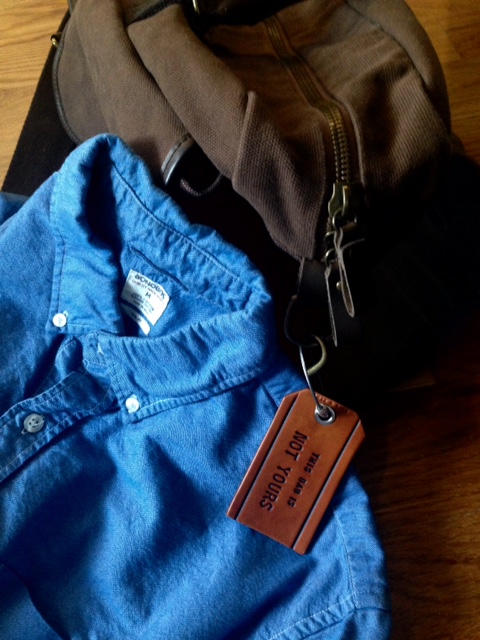 A blue Oxford cloth buttondown -- just one of the many style essentials you should pack this summer. Shirt by Bonobos. Weekender bag by Navali. Luggage tag by Owen & Fred.