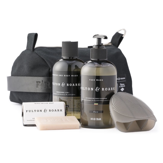 Want all your grooming essentials in one place? Want a way to keep track of ’em? Better yet, want a set that’s as gift-ready for someone else as it is for you? The Fulton & Roark Dopp Kit Gift Set is the way to go.
