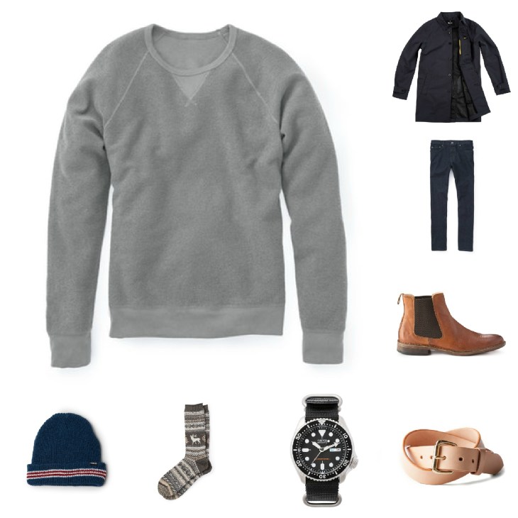 I hope that #OOTD did the trick in terms of how to wear a crewneck sweatshirt this winter — a well-fitting, well-made piece like the Flint and Tinder Reversible French Terry Sweatshirt is practically the ideal building block off of which to incorporate more tailored staples. And those tailored staples would happen to be? Why, a crisp-yet-functional jacket like the Baro DeMarco Jacket, plus bulletproof jeans like the Flint and Tinder Dark Indigo Jeans — are you still with me here?  Subtly stylish accessories like the CHUP Reindeer Socks and the sporty BANKS Stripe Insignia Beanie add just enough visual interest to this outfit. On your wrist, the Huckberry Seiko Dive Watch keeps the focus squarely on the rest of this outfit’s key pieces — lest we forget though, you need a versatile belt to round it all out. My friends, the Tanner Goods Standard Belt is that piece. And with that, we’re all set with this week’s #OOTD! What’d ya think? Let me know in the comments below.