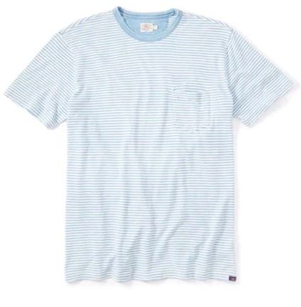 Faherty Brand Pocket Tee under a lightweight navy cotton blazer alongside tan chinos for your next casual day at the office.