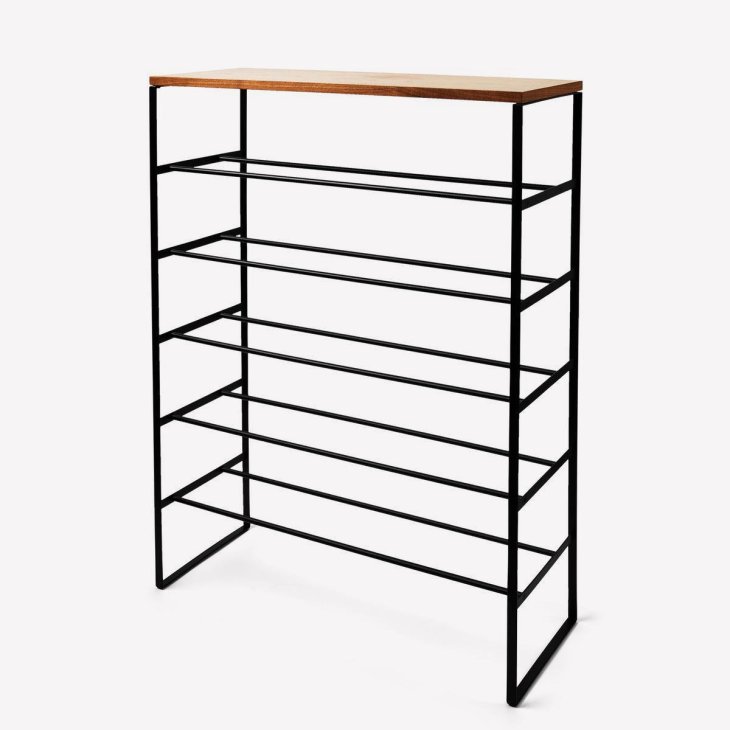 Yamazaki Black Steel & Wood Shoe Rack — $99