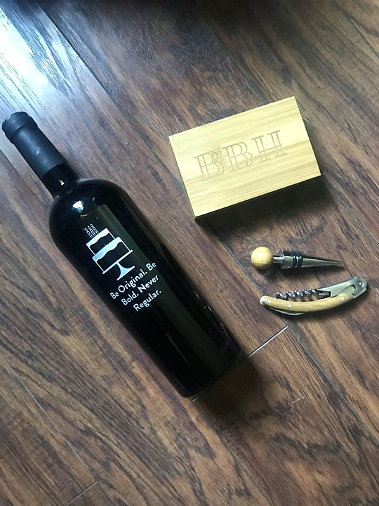 GiftTree Engraved Bamboo Wine Tool Set & Personalized Wine Bottle