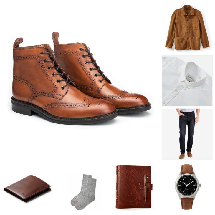 • The Boots: Moral Code Jacques Wingtip Boots, $249 — The right leather boots can really tie an outfit together — and the pair of the moment has to be this pleasingly refined pair from Moral Code, featuring classically rugged brogue detailing. Certainly sharp enough for a distillery, a speakeasy or your favorite cocktail bar.