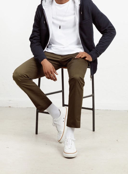 If you thought you knew everything about how to wear chinos for summer, I’m here to tell you to think again. Namely, the best men’s chinos are, first and foremost, going to shake up exactly how you pull together the rest of the look — one great piece can’t help but elevate the rest of your game. Of course, when you kick off your #OOTD with Todd Snyder slim-fit chinos, things get a whole lot cooler (and better) from there. We’ve talked plenty on the blog about how to wear chinos, but now that we’re essentially entering July (gasp!), maybe you want to switch things up a bit. Today, I’ll give you a few pointers on how to do just that. While you could easily wear, say, one of the best Oxford shirts and a navy cotton blazer with this look, we’ll be taking it a more casual, rugged direction. For instance: A stylish lightweight short-sleeve shirt does the heavy lifting here, and a more traditional summer jacket is swapped out with a durable chore jacket for unique summer style. Naturally, we’ll dive into some stylish everyday carry essentials and other gear picks that are crucial to giving this look its seriously cool, modern appeal. But lest we forget: You’ve got to get the best chinos for men to make it all work, so let’s start there. Enjoy the full ensemble below, folks.