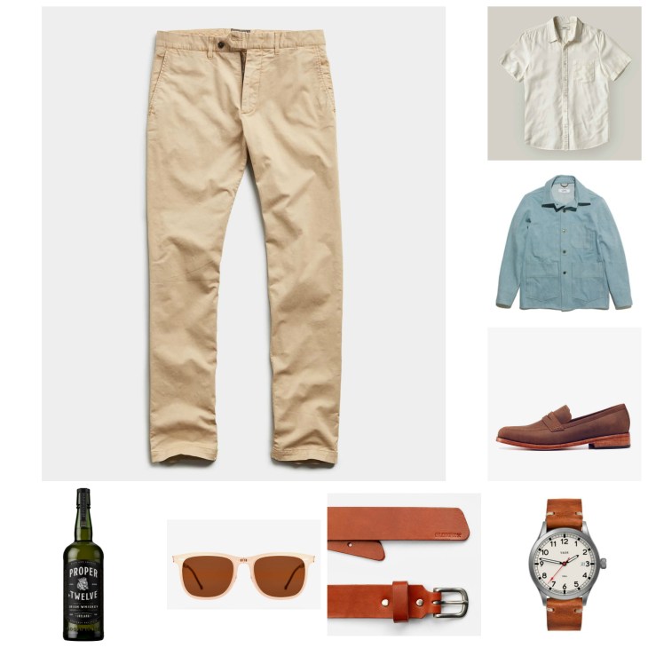 Alright, so perhaps this #OOTD is now changing how you think about, well, how to wear chinos this summer, right? Critically, it all starts with some Todd Snyder chinos that balance dressy and casual style quite nicely (if I do say so myself). We’ll take it a step further with something that’s perhaps expected, but no less cool — one of the best short-sleeve shirts for summer, courtesy of our pals at Buck Mason. How do you shake things up even further beyond that? Go for a rugged chore jacket to give this look some extra edge, then slide right into stylish leather loafers for a nice change of pace (seriously, Nisolo makes some of the most sustainable men’s footwear out there, too). Naturally, this look calls for stylish accessories that stand out in the right way — enter the best leather belt from Billykirk, then accent it with a stylish leather watch from VAER Watches for all-day style and durability. And for functional day-to-night style on the go (socially distanced), I think you’ll certainly find some unique, foldable sunglasses are just the right move here. Pop ’em in the pocket of your denim chore jacket when the sun goes down. Of course, what’s this look missing? Why a fine summer sipper in the form of Proper No. Twelve whiskey — how’s that sound? Can’t get any better. If you’ve got thoughts on this look, head to Twitter to give me your take. Thanks for reading — stay stylish!