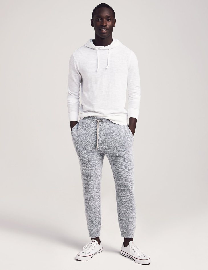 Let’s shift our attention ever so slightly towards weekend-ready comfort. These stylish five-pocket pants are built more like joggers for many a fall weekend relaxing or on the run to your favorite brewery, but that doesn’t mean they won’t work with FRYE leather boots.