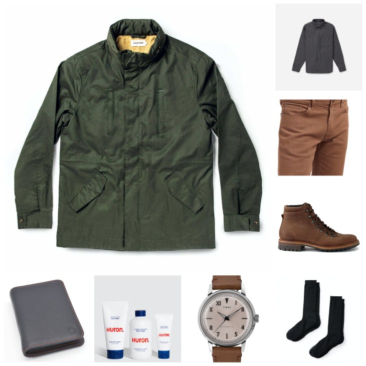 - The Jacket: Taylor Stitch Harris Jacket in Forest Dry Wax, $238 — The durable water-resistant exterior and the sleek fit (plus the zippered hood) make this a jacket that readily blends form and function. One of the best field jackets around, easily.