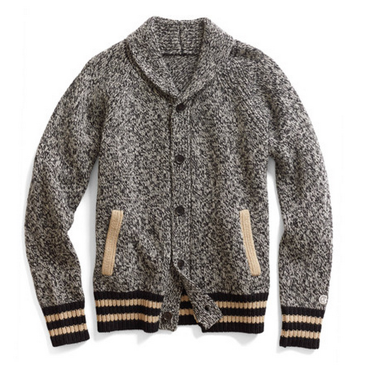 A vintage-looking, sport-inspired shawl cardigan for when it gets cold.