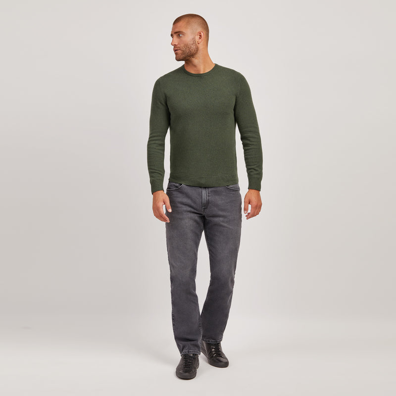 The Todd Snyder Midweight Cashmere Crewneck Sweater offers what the designer calls “an elevated take on the essentials,” with a flattering fit, versatile crewneck construction — able to be worn on its own or over a crisp dress shirt — and an array of color options to suit every taste and sense of style. Details like ribbed stitching at the armholes and bottom hem give the handsome cashmere sweater an eye-catching appeal — that makes it visually interesting and appealing to wear on its own alongside dark blue jeans and burnished leather boots.