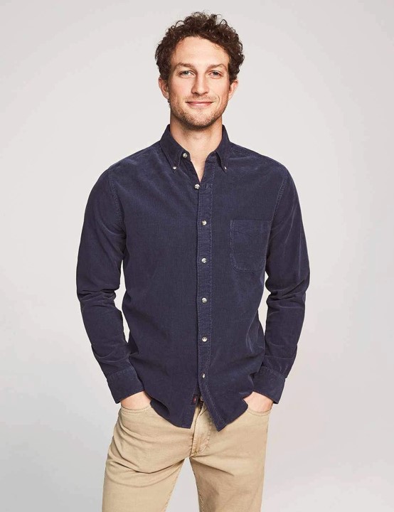 A classic corduory shirt, sure to impress at the office or at happy hour.