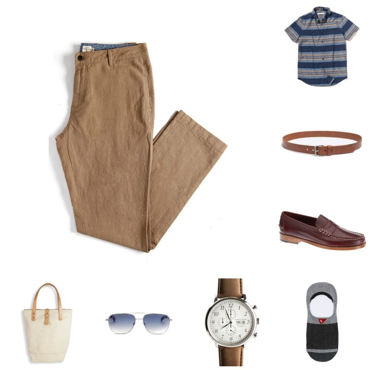 And now, we’re closing the curtain on another #OOTD entry. Did this post get you thinking about how to wear linen trousers this summer? Hopefully, it’s a unique look for you — starting out with durable linen-blend trousers is a smart move, and complementing those trousers with a slim short-sleeve shirt from Outerknown is only going to help you stay cool. Classic loafers are among those men’s style essentials every guy should own, as is a classic dress watch — in that regard, I’d highly recommend you pick up the Sebago loafers shown here, along with the Armogan Spirit of St. Louis Chronograph. Don’t sleep on your everyday carry, either — Component sunglasses are not to be overlooked, and the W&P Design Cocktail Tote should function quite nicely at either a summer BBQ or a weekend coffee shop outing. Once again, I hope you’re ready to beat the heat in style.