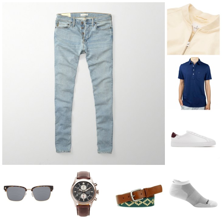So, you’ve picked up your new favorite pair of light wash denim — or at least, you’ve thought about it. Now, how do you wear those jeans? Well, there are a few moves that’ll help you take on spring in style — unlike pairing dark selvedge denim with sturdy leather boots and a thick shawl cardigan for winter, the focus today is on keeping things light, breezy and fun. That means we’re grabbing an essential spring polo and a classic cotton bomber jacket, all the while focused on dialing in the fit of your light wash denim. In the warm, breezy days of spring and summer, light wash denim just fits in with the weather and the atmosphere. Trust me on this: You’re going to want to wear light wash jeans as much as you can this summer — particularly when those jeans are made in a unique wash and feature a slim fit. That means that from spring road trips to summer music festivals, slim light wash jeans should be a go-to move — and it doesn’t get better than the Abercrombie light wash denim seen here. You know Abercrombie and Fitch for the brand’s stylish, durable winter gear, and that same attitude carries over to its spring line. If you have other questions on how to wear your light wash denim, or if you just want to get in touch, hit me up on Twitter or join me over on the ‘Gram for style inspiration on the daily.