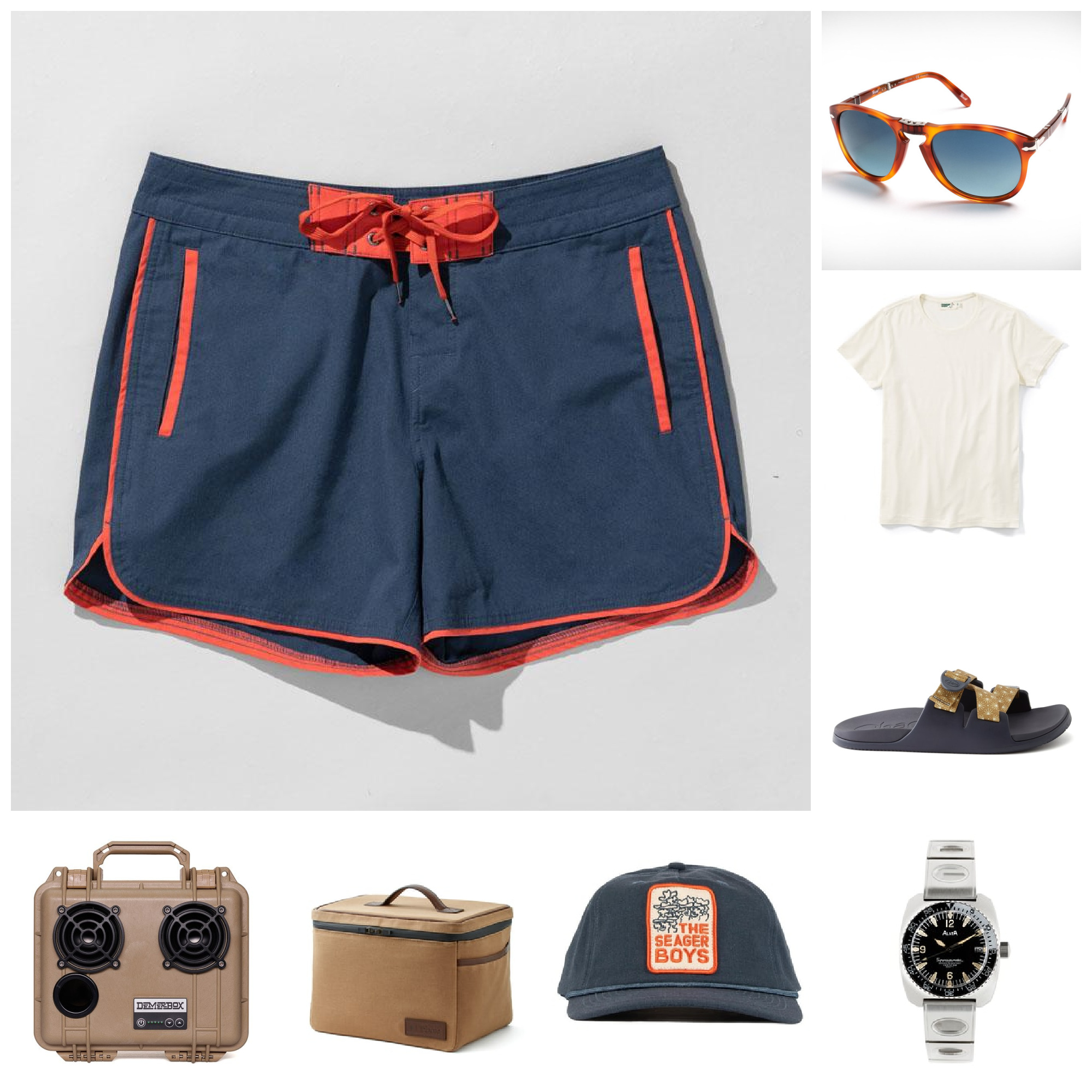 - The Sunglasses: Steve McQueen Persol 714 Sunglasses, $480 via UNCRATE — Aside from your stylish swim trunks, a pair of the coolest sunglasses for men might be the one of the most important accessories to bring to the beach. Luckily, these Steve McQueen Persol Sunglasses, as sold by UNCRATE, fit the bill perfectly. Instantly iconic.